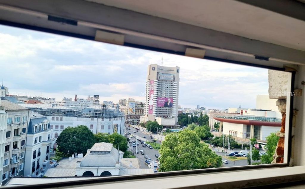 Avantajele proprietății? Prețul, localizarea în centrul orașului și o priveliște spectaculoasă către una dintre cele mai cunoscute clădiri din București – Grand Hotel Bucharest (fostul Intercontinental).
