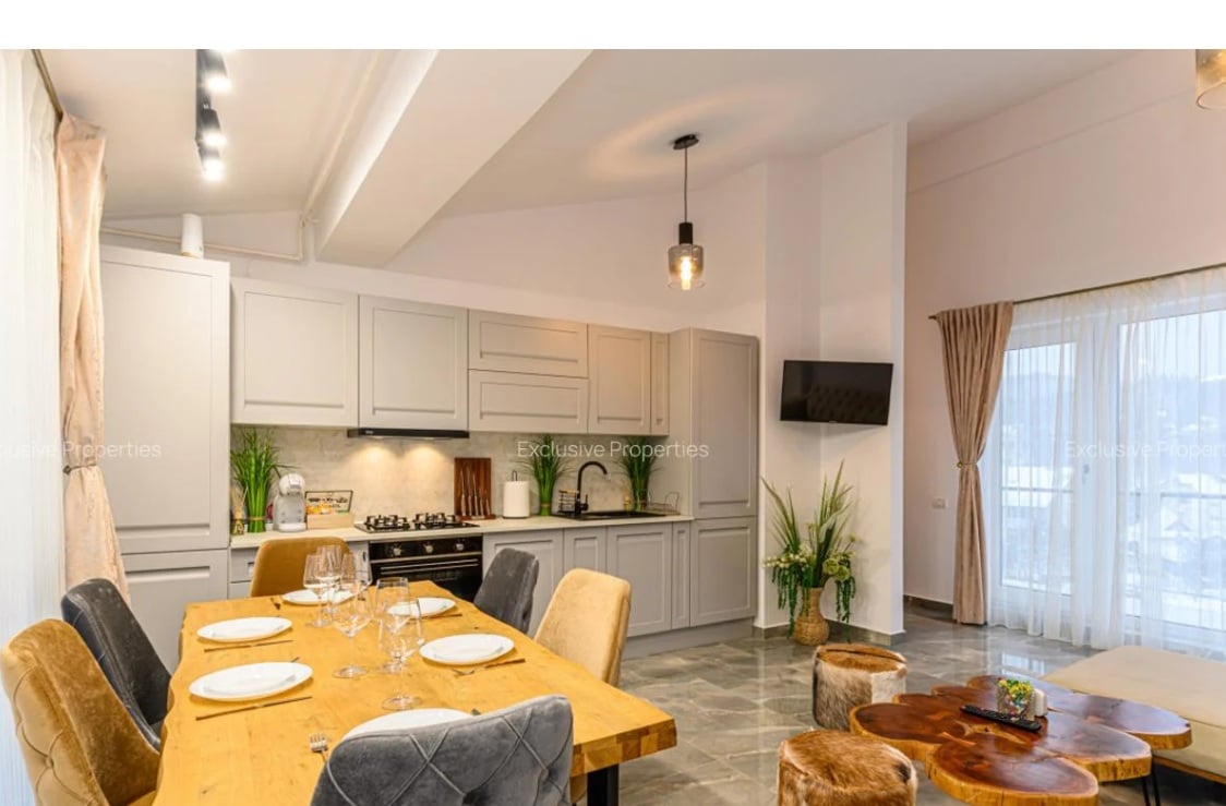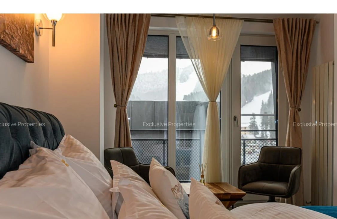Cu 205.000 euro poți cumpăra, de exemplu, un apartament premium cu două camere din Predeal cu vedere directă către pârtie. Pentru această sumă, viitorul proprietar va avea la dispoziție inclusiv o terasă amenajată cu jacuzzi privat, grătar și foișor. Proprietatea este listată deja pe platforme precum Airbnb și Booking și generează potrivit anunțului de vânzare publicat pe Imobiliare.ro „venituri anuale de 250.000 euro”.