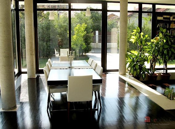 Dacă te numeri printre fanii creațiilor arhitecturale deosebite, nu trebuie să călătorești peste mări și țări pentru a întâlni așa ceva. Vila din imagini, scoasă la vânzare pe Imobiliare.ro (aici poți găsi mai multe detalii despre ofertă), este amplasată la marginea Capitalei, în zona Pipera-Iancu Nicolae, în imediata apropiere a pădurii.