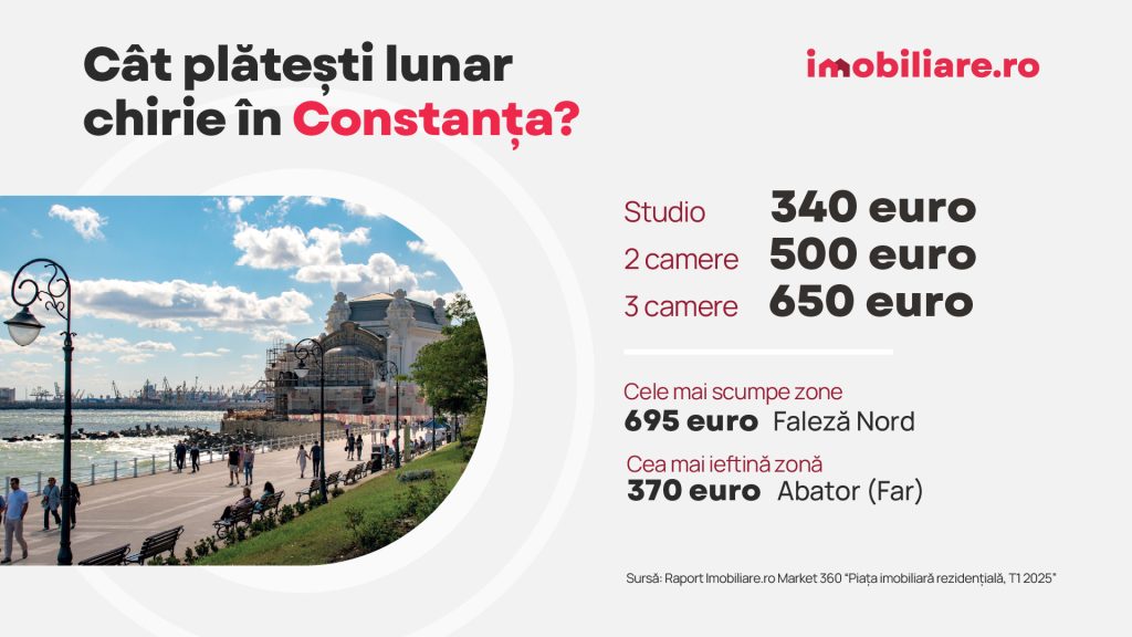Cea mai scumpă zonă din oraș este, la începutul acestui an, Faleza Nord, unde apartamentele se închiriază cu o sumă medie lunară de 695 euro. Chiriile s-au ieftinit ușor în centrul orașului, mai exact de la 700 la 650 euro/lună.