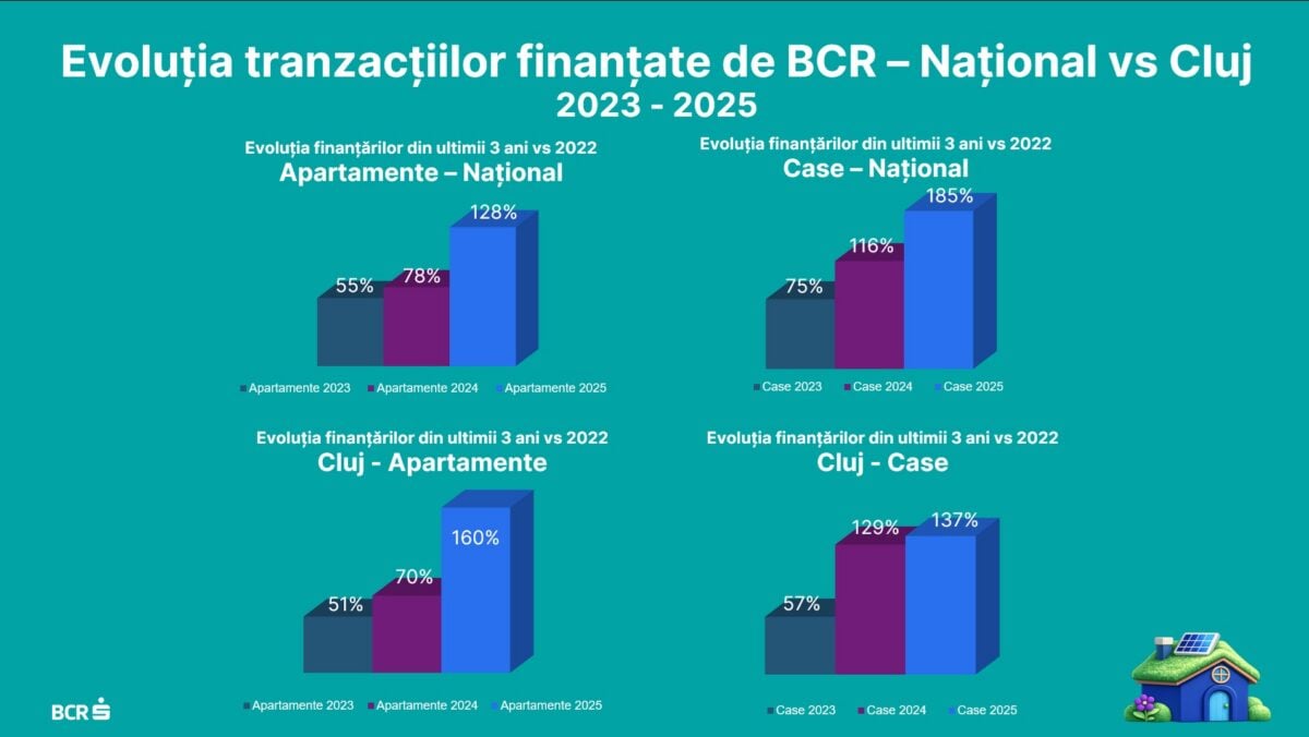 “Am ajuns să finanțăm de 3 ori mai mult decât finanțăm în 2022. Asta înseamnă că 1 din 3 români care a contractat un credit ipotecar l-a luat de la BCR. Acest lucru s-a întâmplat și la Cluj”, a declarat Petru Ciurtin, Director Zonal BCR Cluj-Napoca.