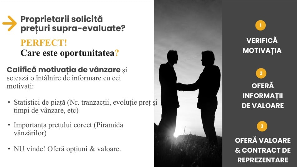 Trebuie să mă duc adaptat (n.r. la client). Să diversific serviciile pe care le ofer ca agent imobiliar, să ofer o paletă la care poate că acum 5-7 ani nu mă gândeam.