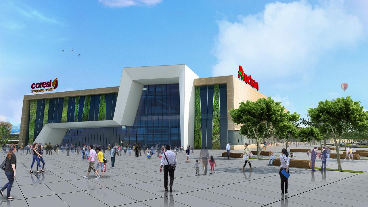 Coresi Shopping Center va cuprinde un hipermarket Auchan de 16.000 de metri pătraţi, o galerie de spaţii comerciale cu o suprafaţă totală închiriabilă de 25.000 de metri pătraţi, precum şi o parcare de 3.000 de locuri. Potrivit estimărilor iniţiale ale companiei, pentru această etapă de dezvoltare a proiectului va fi necesară o investiţie de 55-60 de milioane de euro, mallul urmând a fi livrat la finele anului 2013.