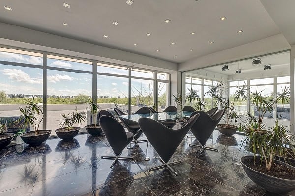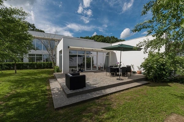 Proiectată de un arhitect belgian, împreună cu biroul de arhitectură autohton Alter Ego, construcția a fost realizată în perioada iulie 2010-aprilie 2011. „Au gândit casa doar pe parter, iar la etaj e doar biroul (de 150 de metri pătrați), înconjurat de terase (cu un total de peste 690 de metri pătrați n.red.)”, spune Florin Lungu, broker/owner al Gavriliu Imobiliare (agenția care se ocupă în exclusivitate de promovarea proprietății).