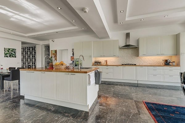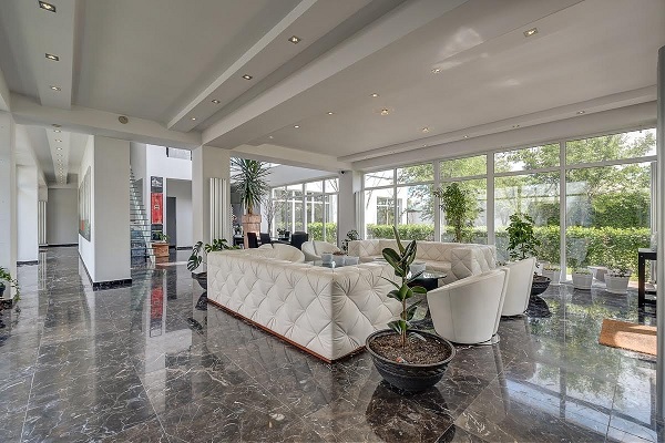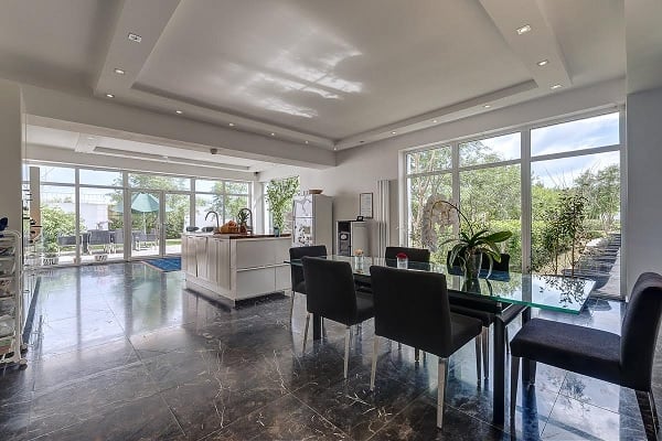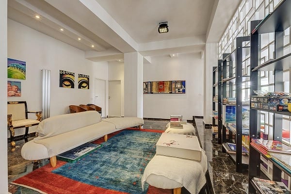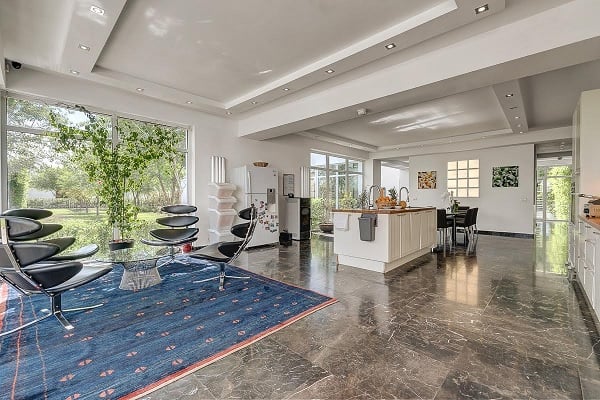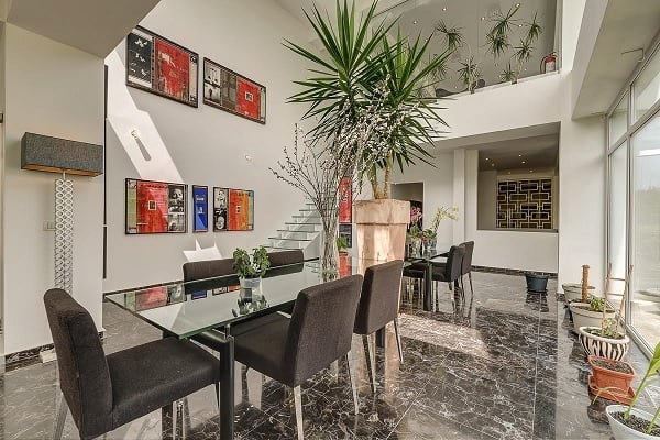 Locuința este compusă din șase zone cu funcționalități distincte: o zonă de zi, una de lucru, una matrimonială și una a copiilor; în plus, un spațiu dedicat personalului și altul musafirilor sunt conectate printr-o pasarelă de corpul principal al casei. Dormitorul matrimonial este dotat cu dressing-room și sală de baie, cumulând 150 de metri pătrați. Zona de zi cuprinde, pe lângă living și bucătărie (cea din urmă cu o suprafață de peste 70 de metri pătrați), și un mini-cinema.