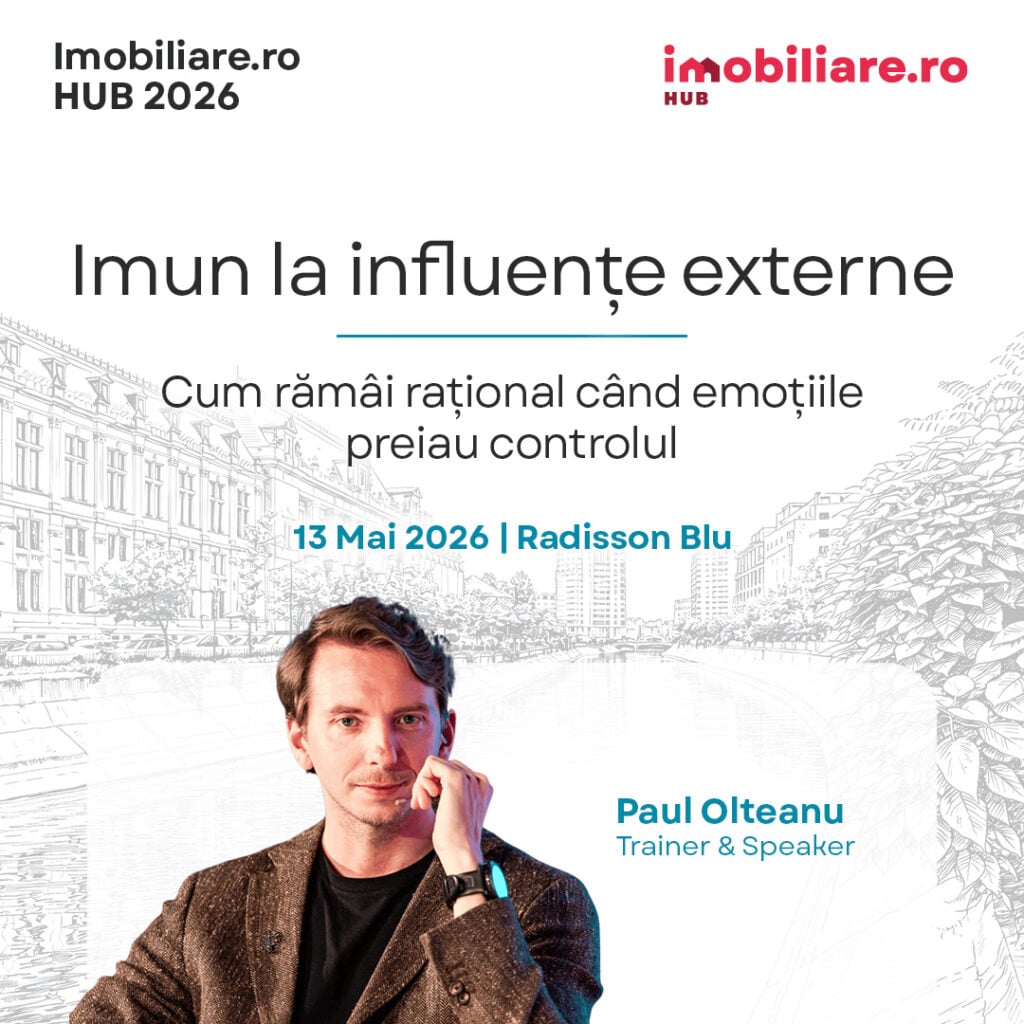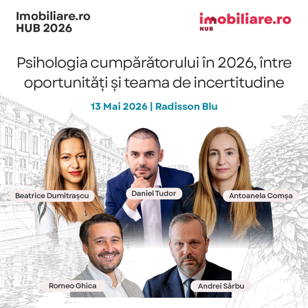 Cele mai noi date de piață vor fi prezentate în cadrul conferinței naționale de către Andreea Popa, Senior Consultant Imobiliare.ro Market 360, iar psihologia cumpărătorului în 2026 va fi analizată în detaliu de jucători cu renume în sectorul de real estate. Antoanela Comșa (Director Dezvoltare ALLTROM) dezbate alături de Beatrice Dumitrașcu (Head of Residential Division One United Properties), Daniel Tudor (CEO The Concept), Andrei Sârbu (CEO SVN România) și Romeo Ghica (Manager Operațiuni Hercesa România) ce caută cumpărătorii și ce oportunități oferă piața imobiliară anul acesta. Speakerii evenimentului Imobiliare.ro HUB 2026 vor explica pe larg de ce imobiliarele pot fi un refigiu sigur în perioade de incertitudine, dar și care sunt provocările de care se lovesc dezvoltatorii la ora actuală.