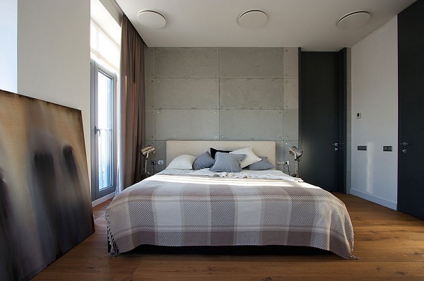 Același amestec între durabilitate și noutate se păstrează și în dormitorul matrimonial, unde textile cu un aer rustic, reconfortant, se combină cu răceala plăcilor folosite pentru „îmbrăcarea” peretelui din dreptului patului, cu designul inedit al lămpilor, precum și cu tabloul rezemat nonșalant de un perete. În camera copilului, predominantă rămâne o notă caldă de confort, extrema modernă a amenajării fiind mult „îndulcită”, redusă la o tendință spre austeritate tipic minimalistă.