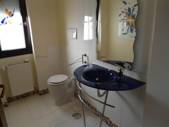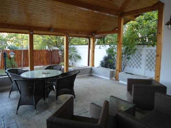 Din „peisaj” nu lipsește nici o notă… exotică la capitolul design, însă aceasta este păstrată doar pentru spațiile de relaxare (tema navigației folosită pentru amenajarea zonei de bar, jacuzzi și saună, mobilierul din ratan de pe terasă etc.). Proprietatea mai dispune de două garaje proprii, incluse în corpul de clădire al vilei. Curtea reprezintă un atu important al acestei vile, oferind un real potențial peisagistic.
