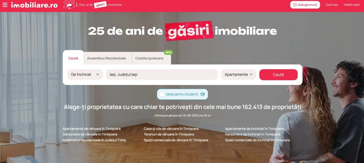 Ești student și vrei să închiriezi o locuință în Iași înainte de începerea noului an universitar? Imobiliare.ro îți vine în ajutor. Adaugă filtrul “Ideal pentru studenți” căutărilor tale și vei identifica mai rapid apartamentul potrivit, chiar și atunci când ai la dispoziție un buget redus. Află mai multe detalii aici.