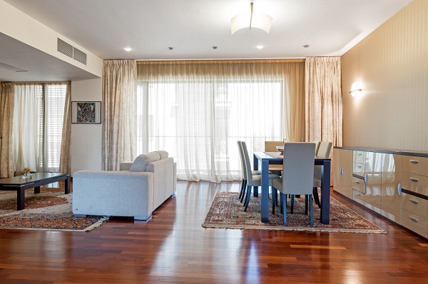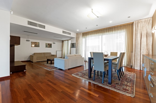 Amplasat în zona Herăstrău-Șoseaua Nordului, apartamentul din imagini a fost construit în anul 2007. Format din trei clădiri, ansamblul rezidențial din care acesta face parte – numit Grand Residence – dispune de curte interioară amenajată, servicii de pază permanentă, sistem de supraveghere video și sală de fitness. Locuința este compartimentată în trei camere (plus dependințe) și are o suprafață utilă interioară de 138 de metri pătrați, la care se adaugă 32 de metri pătrați de terase.
