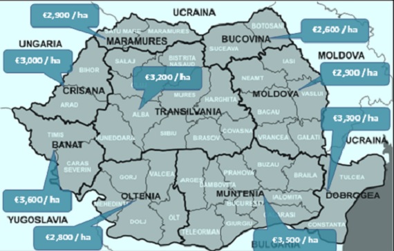 În prezent, potrivit datelor DTZ Echinox, prețurile de achiziție pentru loturile agricole din țara noastră variază atât în funcție de regiune – între 2.600 de euro pe hectar (în Bucovina) și 3.600 de euro pe hectar (în Banat) -, cât și în funcție de caracteristicile fiecărui teren în parte (suprafață, tipul de sol, existența unui sistem de irigații etc.). Ținând cont de discrepanța ce există încă față de alte țări, reprezentantul companiei estimează că acest tip de proprietăți vor continua să se aprecieze în următorii doi ani, într-un ritm cuprins între 5% și 10% pe an. „Decizia de a cumpăra teren se poate dovedi inspirată pe termen lung dacă prețurile din România se vor alinia într-o anumită măsură prețurilor practicate în celelalte țări din vestul Europei”, notează reprezentantul companiei. Dincolo de beneficiul majorării previzionate a prețurilor, investitorii de pe acest segment sunt interesați mai degrabă de veniturile încasate din activitatea propriu-zisă de exploatare, chiar dacă există și jucători care au achiziționat parcele în ideea comasării, cadastrării și revânzării ulterioare, completează Pop.