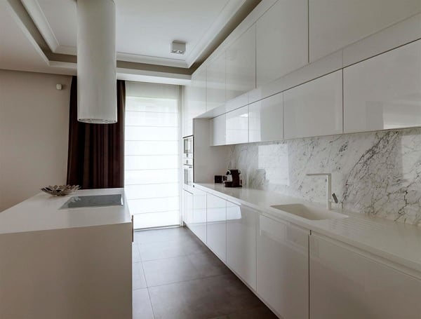 Situat în Varșovia, Polonia, apartamentul din imagini a fost amenajat de biroul Hola Design. Dispusă pe două nivele, locuința este formată dintr-un living spațios, cu bucătărie inclusă, alături de șase dormitoare (dintre care două pentru copii), o cameră de oaspeți și un birou. Avantajul suprafeței generoase este perfect pus în valoare prin adoptarea unui design minimalist, ce urmează principiul „less is more” („mai puțin înseamnă mai mult”, n.red.).
