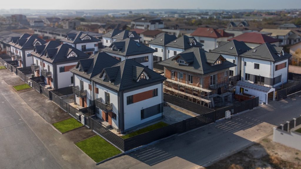 Ansamblu de vile Green Building, precertificate de Romania Green Building Council, cu pompă de caldura și panouri fotovoltaice, situat în Otopeni în complexul Antracit Residence 8. Mai multe detalii aici.