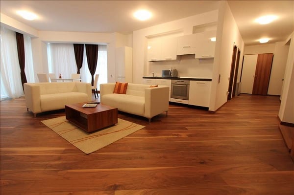 Situat în zona Elisabetin, din Timișoara, apartamentul din imagini face parte dintr-un ansamblu rezidențial finalizat în anul 2011, respectiv Lotus Residence. Locuința este situată la etajul al doilea (din patru) și dispune de o suprafață utilă de 90 de metri pătrați, compartimentată în două camere, plus dependințe. Proprietatea este complet mobilată și utilată și se află disponibilă spre închiriere, la un preț de 650 de euro pe lună.