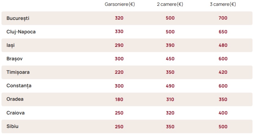 Un chiriaș are practic nevoie de un buget de 180 de euro/lună pentru a-și permite o garsonieră în Oradea și de 310 euro/lună în cazul în care era interesat de un apartament cu 2 camere. Costurile sunt mai mari, dacă vrei mai mult spațiu și ajung, în medie, până la 350 de euro/lună la 3 camere.