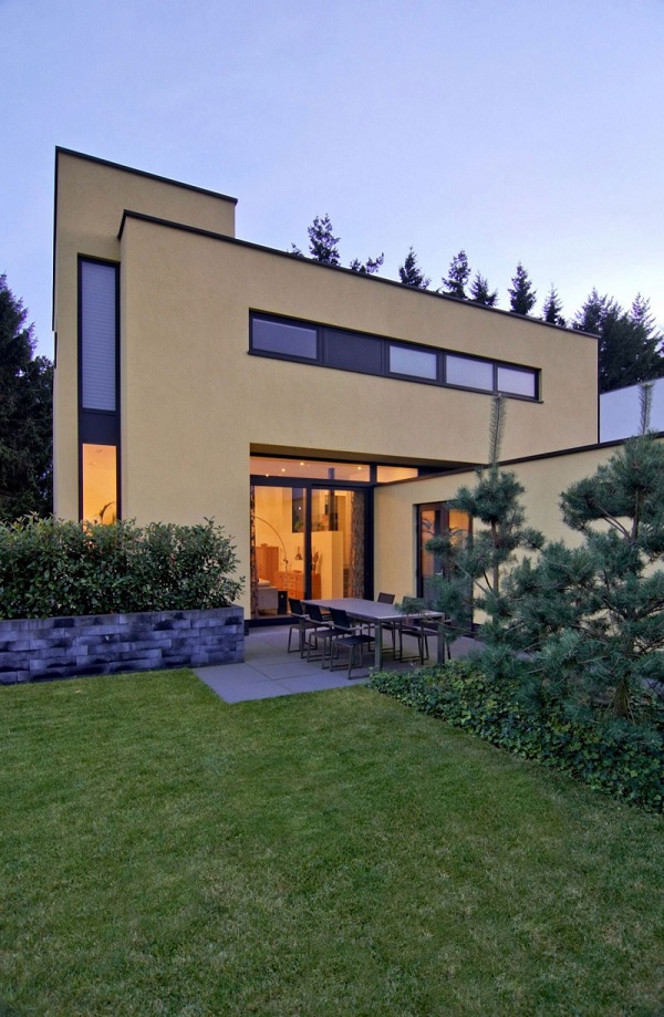 Vila din imagini este situată în orașul Eindhoven, din sudul Olandei. Proiectul reflectă interesul proprietarilor pentru arhitectura modernă, distingându-se prin forma sa paralelipipedică și acoperișul plat. Nuanța pală de galben folosită pentru finisarea exteriorului dă o notă unică imobilului, trasând totodată conturul unui spațiu locativ cald, perfect pentru o familie cu doi copii.