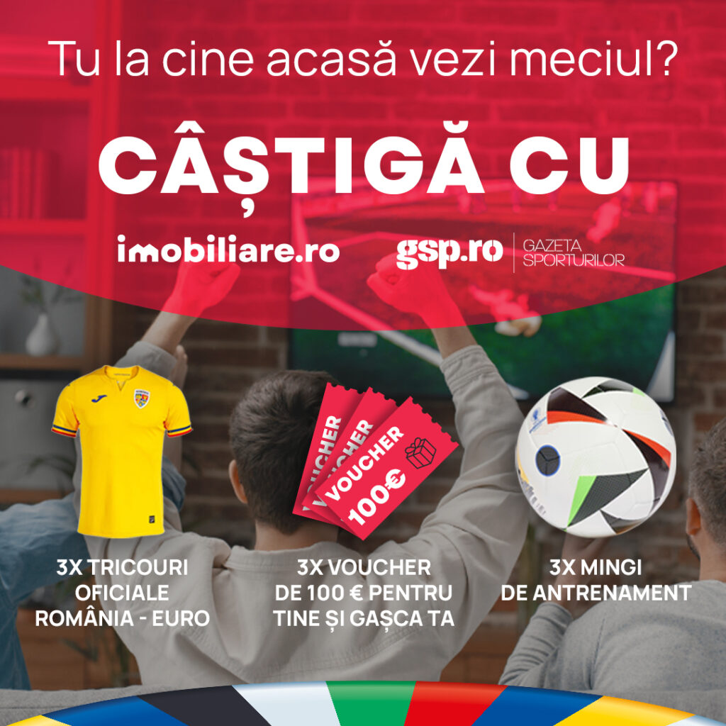 – Doar pentru TikTok: Pentru o șansă dublă la câștig, adaugă un duet în profilul tău cu locul unde vei viziona meciul. Poza poate fi făcută în timpul meciului cu prietenii sau înainte, cu setup-ul pregătit. În postare, menționează conturile Imobiliare.ro și Gazeta Sporturilor – GSP și folosește hashtag-ul campaniei #EuroAcasa.