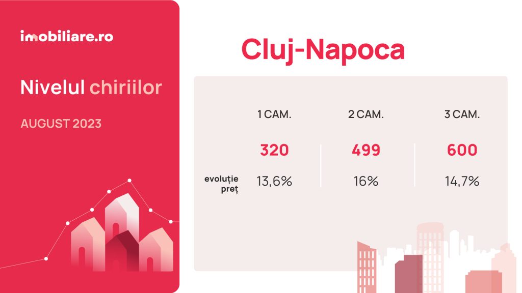 Chiria medie solicitată pentru un apartament cu 3 camere în Cluj-Napoca a ajuns la 600 de euro pe lună, după o scumpire cu aproape 15% de la începutul lui 2023.