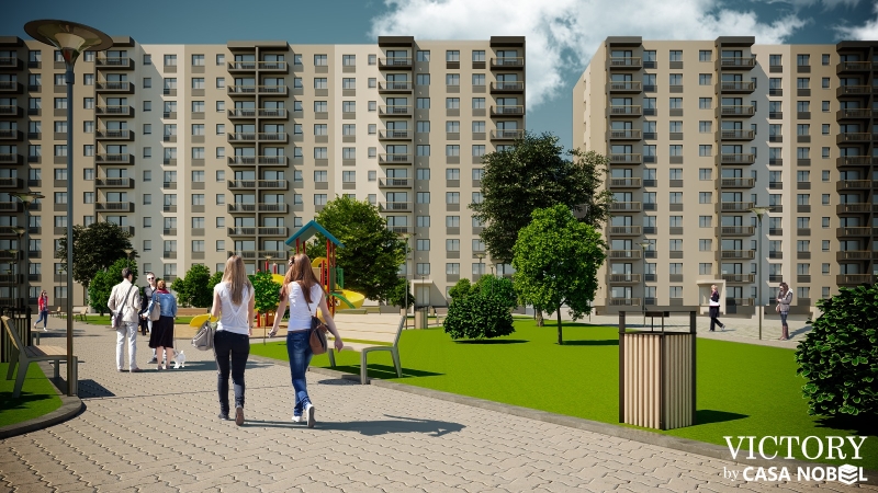 „Cu un total de 718 apartamente şi zece spaţii comerciale, ansamblul rezidenţial Victory by Casa Nobel este compus din cinci clădiri cu regim mic de înălţime (P+3E) şi patru clădiri cu regim de înălţime P+10E. Acesta va dispune de un parc poziţionat central, cu o suprafaţă de 3.200 de metri pătrați, de adăpost ALA (Apărare Locală Antiaeriană) în cadrul clădirilor înalte şi de locuri de parcare supraterane şi subterane.”