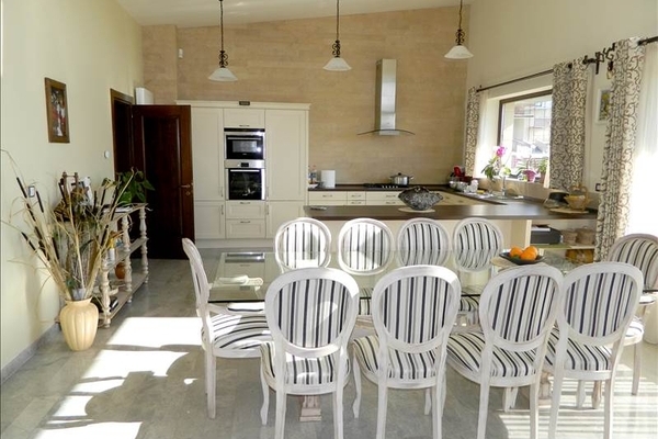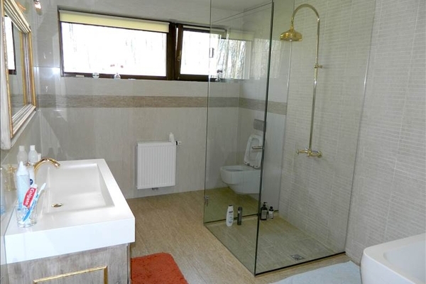 Casa are un nivel ridicat de eficiență energetică, datorită sistemului de termoizolare și dotării cu panouri solare; aceasta este prevăzută cu sistem de încălzire prin pardoseală. Printre finisajele folosite se numără materiale precum piatra naturală, marmura și lemnul masiv. Grădina este amenajată cu gazon și arbuști ornamentali și include o livadă, dar și o zonă de grătar.