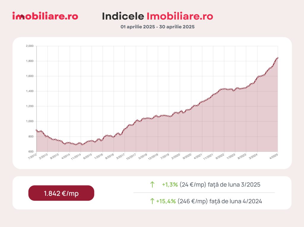 Prețurile locuințelor au înregistrat noi majorări de la începutul anului. Apartamentele sunt scoase la vânzare, la nivel național, cu un preț mediu de 1.842 euro/mp util, potrivit Indicelui Imobiliare.ro. Acestea sunt cu 6% mai scumpe decât în ianuarie. În plus, cumpărătorii plătesc cu 15% mai mult acum pentru o locuință decât în urmă cu un an.
