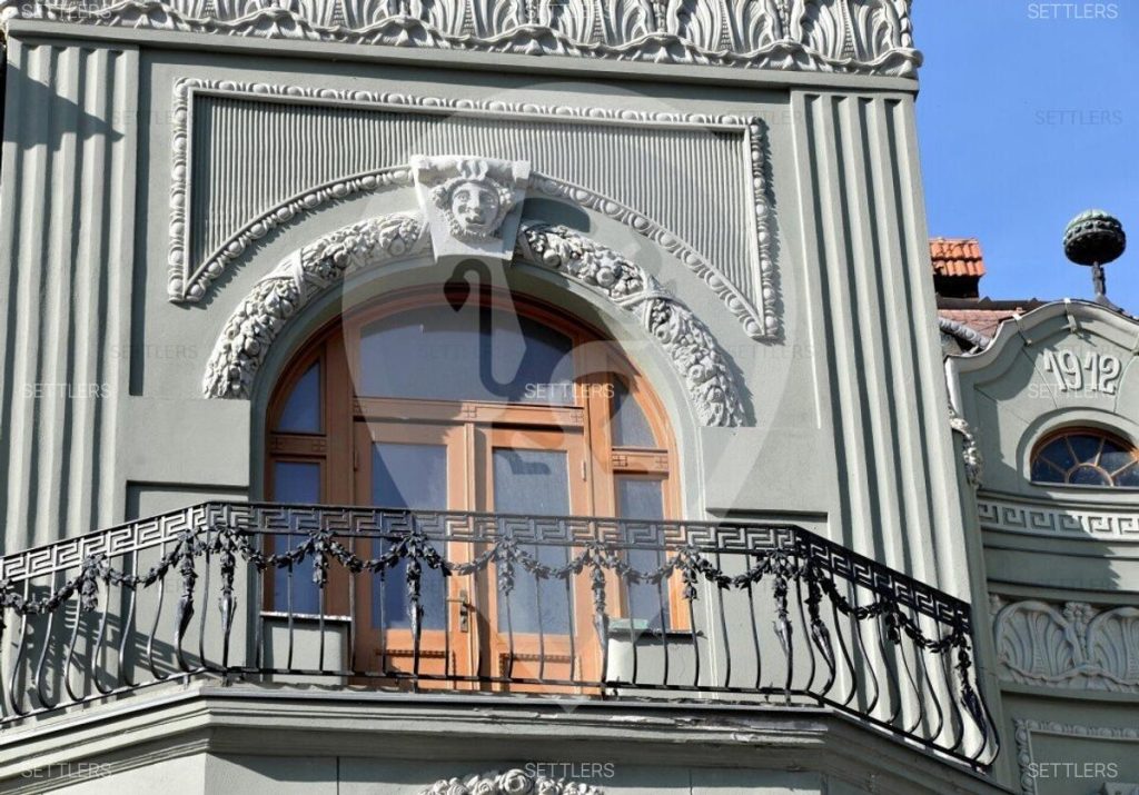 Pereții de pe casa scării sunt acoperiți cu ornamente Art Nouveau, iar geamurile, ușile, balustradele și feroneria au fost conservate și recondiționate pentru a păstra caracterul unic al proprietății. Sunt necesare, însă, unele investiții la interior, conform anunțului publicat pe Imobiliare.ro.
