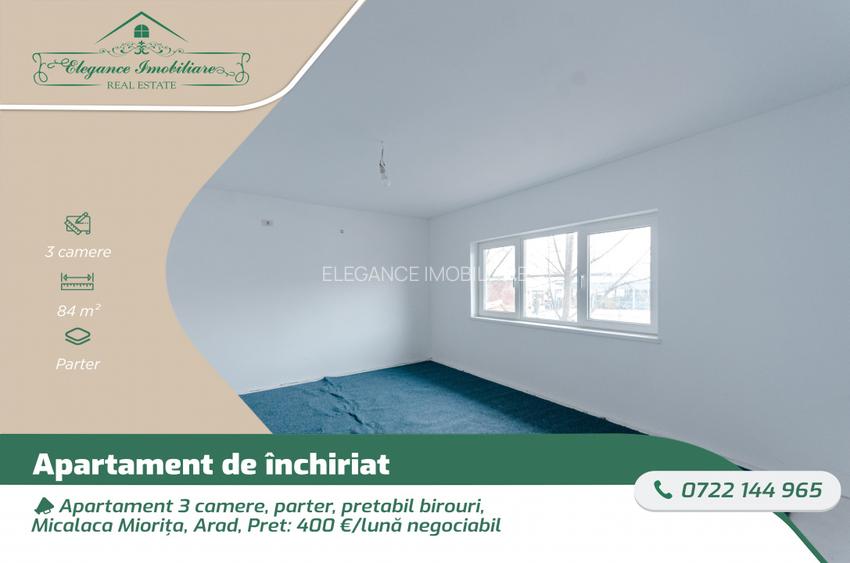 Apartament 3 camere, parter, pretabil birouri, Micalaca Miorița, Arad