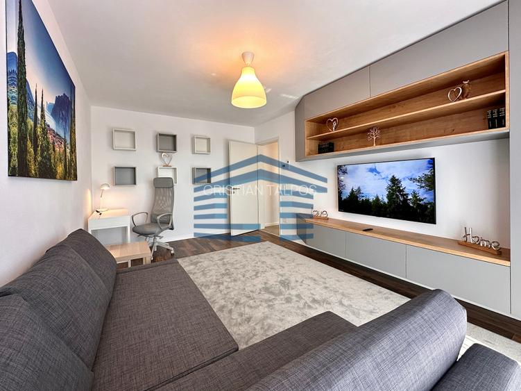 Încălzire prin pardoseală, aer condiționat, mașină de spălat vase, mașină de spălat rufe, 2 smart TV-uri, plită electrică, cuptor electric, hotă, combină frigorifică, termostat, aspirator, videointerfon, lift, cablu și internet activ. Canapeaua din living este extensibilă și are prevazută și un copper. De asemenea apartamentul vine cu un loc de parcare exterior situat în fața scării. Parcarea este inclusă in preț