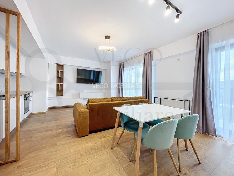 Locuinta se desfasoara pe o suprafata utila de 54 mp + un balcon de aproximativ 6 mp, finisajele sunt moderne, de inalta calitate, se inchiriaza complet mobilata si utilata, inclusiv cu masina de spalat vase, TV Smart 4K 164 cm, uscator rufe, cuptor electric cu plita inductie, in randul dotarilor mentionam pardoseala cu parchet laminat, ferestre termoizolante cu tamplarie PVC, usa antiefractie la intrare si usi interioare din lemn, iar confortul termic este oferit de centrala termica a imobilului cu sistem de incalzire in pardoseala.