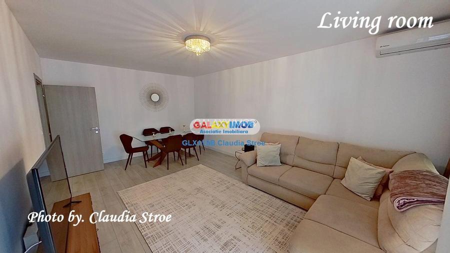- 1 living room - mobilat minimalist, cu mobilier media si coltar extensibil, plus loc de dining numai bun pentru serile in care iti vei invita prietenii la cina;