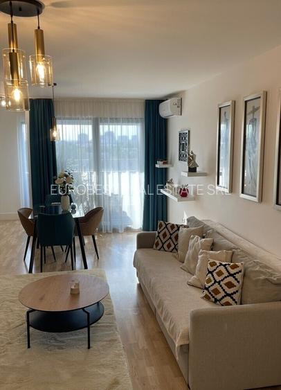 Apartamentul are 60 mp utili+1 balcon de 5 mp, dispune de vedere stradala spectaculoasa asupra zonei de nord. Este mobilat si utilat complet, modern, are centrala proprie de apartament, incalzire in pardoseala, climatizare, bucatarie deschisa cu livingul, masina de spalat vase, totul nou.