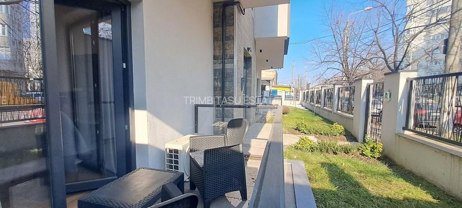 Apartamentul este amplasat la parter, ofera beneficiul de a avea doua terase si de a fi primul locatar.