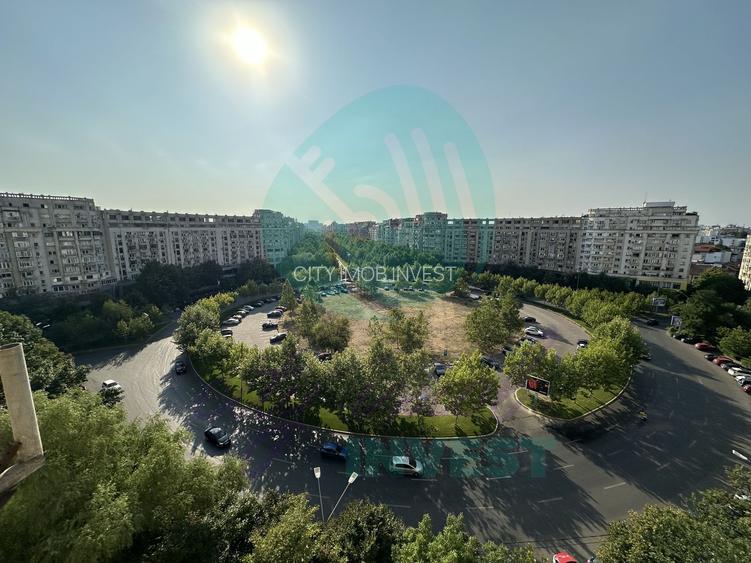 Situat chiar în Piața Alba Iulia, cu acces direct din față, la etajul 8 din 10 într-un bloc monolit mixt (birouri și rezidențial), acest apartament de 2 camere oferă exact acel tip de expunere pe care nu o găsești des în piață.