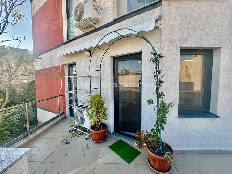 Studioul este semidecomandat format din bucatarie+living, dormitor, baie cu geam si o terasa de 18 mp.