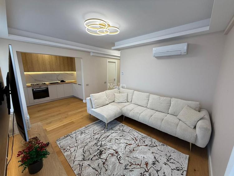 Apartamentul este mobilat și utilat complet, la standarde premium, cu mobilier modern, finisaje de calitate superioară și electrocasnice încorporate. Spațiul este eficient compartimentat, luminos și amenajat cu atenție la detalii, oferind un ambient rafinat și confortabil.