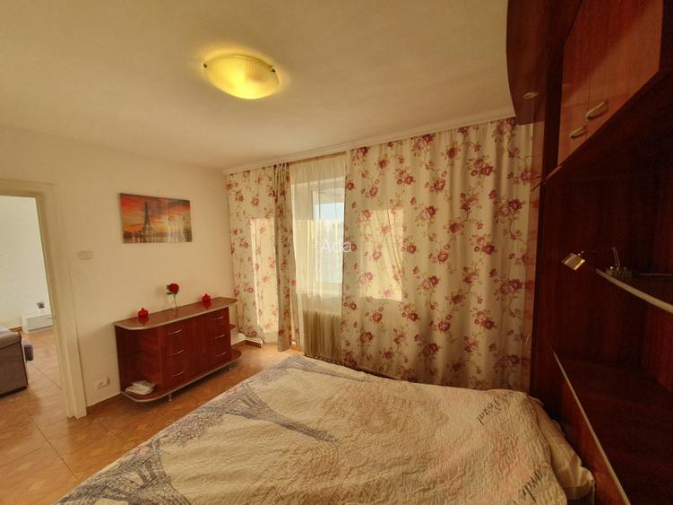- 1 dormitor matrimonial retras, cu un pat king size (160x200cm), cu acces direct la baie (duș și cadă, cu bideu și WC), are balcon propriu