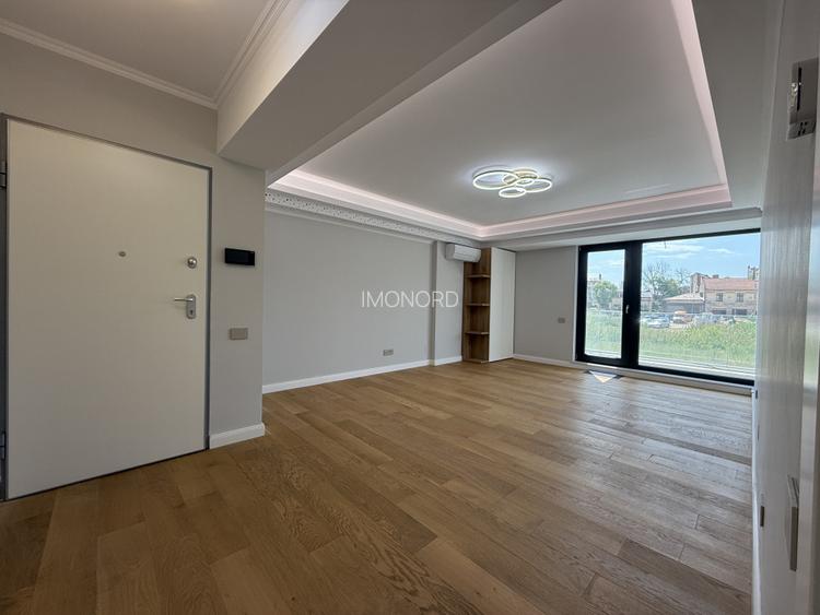 Va propunem un apartament orientat catre Sud, cu o terasa de 1,5m latime. Apartamentul are living, hol, dormitor cu baie proprie. In total sunt 2 grupuri sanitare, suprafata este de 61mp utili plus terasa. Bucataria separata de living, este mobilata si utilata complet cu mobilier din MDF vopsit si electrocasnice: masina de spalat vase, cuptor electric, chiuveta din granit, plita pe gaz si inductie, hota, combina frigorifica, toate incorporate in mobilier, marca TEKA.