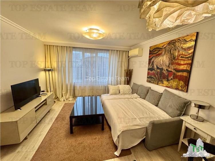 Zona de living este primitoare si aerisita, dormitorul ofera intimitate si relaxare, iar bucataria este complet echipata, ideala pentru un stil de viata urban. Finisajele sunt de calitate superioara, iar mobilierul ales completeaza perfect caracterul premium al proprietatii.