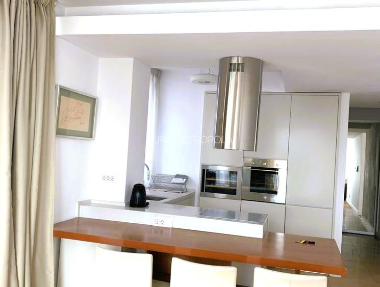 Eurometropola va oferă spre inchiriere un penthouse elegant cu 3 camere decomandat, dispus pe o suprafata utila de cca 110mp + 2 terase de cca 60mp, mobilat si utilat gama premium , smart home, 2 grupuri sanitare, sala sport, 1 loc parcare subteran.