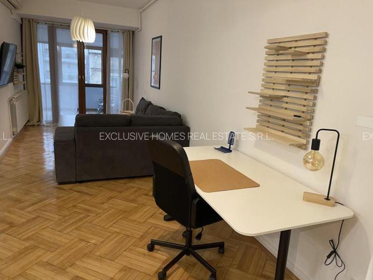 Afentia noastra va prezinta spre inchiriere un apartament de 2 camere situat in zona Sala Palatului. Apartamentul este spatios, 60 mp utili, et. 6/7 si se inchiriaza complet mobilat si utilat. Beneficiaza de multiple imbunatatiri, AC, balcon mare inchis si detine centrala proprie. Apartamentul este situat foarte aproape de intrarea in parcul Cismigiu.