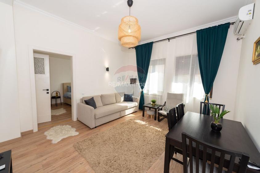 Vă prezint un apartament de vânzare cu 2 camere, localizat la kilometrul 0, la Universitate, pe Bulevardul Nicolae Bălcescu nr. 16, colț cu Batiștei.