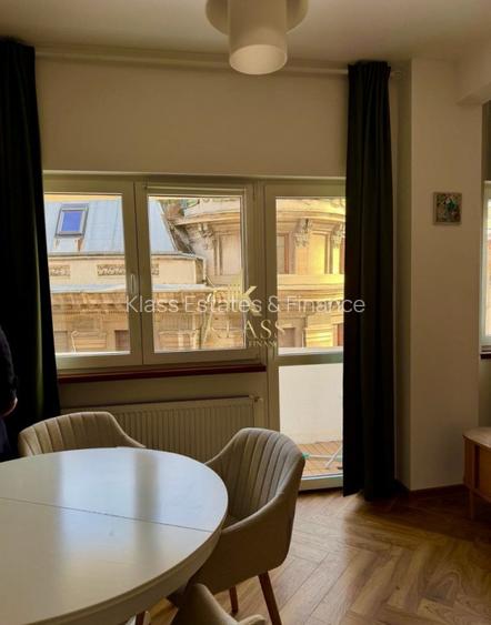 Klass Estates va propune urmatoarea oferta de inchiriat, un apartament cu 3 camere in zona Universitate, la aproximativ 10 minute de mers pe jos de statia de metrou Universitate. Proprietatea este amplasata intr-un imobil interbelic bine intretinut, cu lift, intr-o zona centrala cunoscuta pentru arhitectura istorica si oferta variata de restaurante si cafenele.