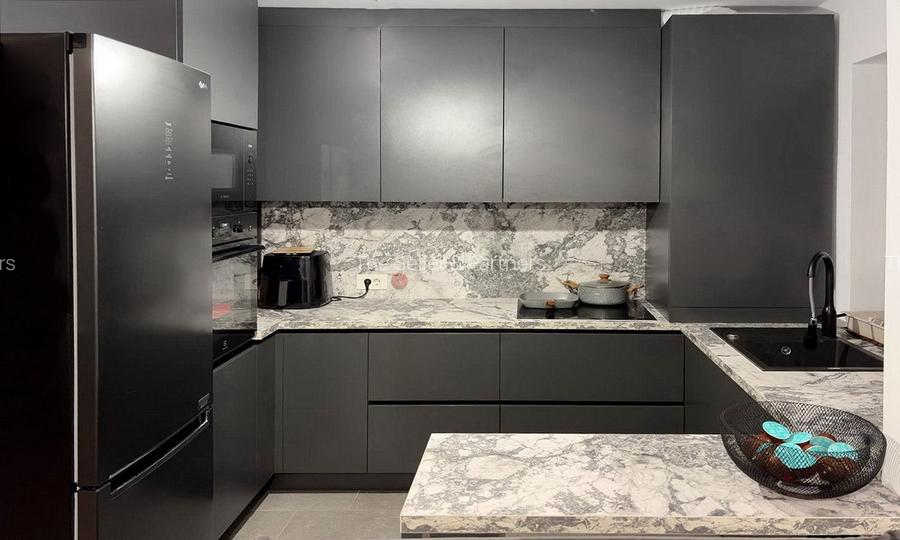 - bucataria, de tip open space, aceasta fiind inclusa in zona de zi;