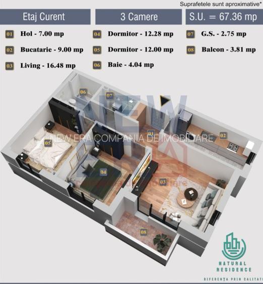 Apartament 3 camere de Vanzare Natural Residence Chiajna, direct dezvoltator