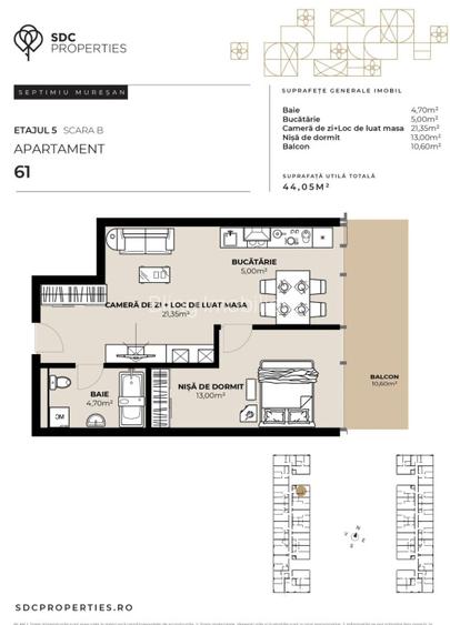 PROIECT EXCLUSIVIST! Apartament de vanzare, 44,05 mp, Complex SDC