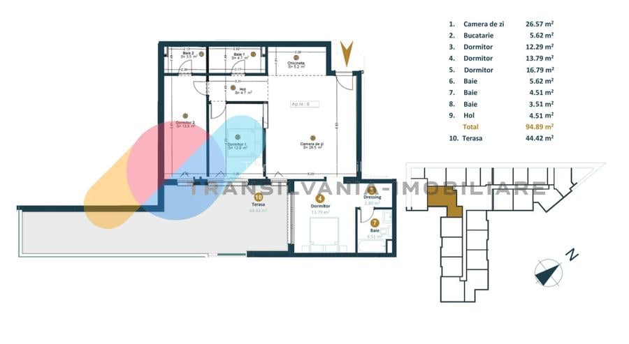 Apartament 4 camere, 93 mp utili, 53 mp terasa, Marasti