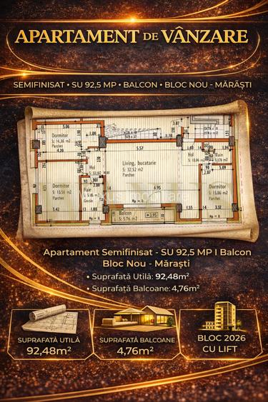 Apartament Semifinisat - SU 92,5MP I Balcon I Bloc Nou - Marasti