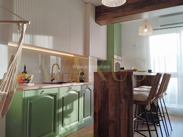 WAXUS IMOBILIARE vă propune spre vânzare un apartament cu 2 camere, situat în zona Piața Mihai Viteazu, Cluj-Napoca, la etajul 1 din 4, într-un imobil nou, dotat cu lift. Proprietatea are o suprafață utilă de 42,5 mp, la care se adaugă un balcon tip logie de 3,4 mp, cu vedere spre spațiul verde din curtea interioară. Compartimentarea este eficientă: living cu bucătărie open-space, dormitor și baie, cu acces pe balcon din ambele camere. Apartamentul se vinde complet mobilat și utilat, amenajat în stil cottage-chic, cu dotări moderne: centrală termică proprie cu termostat smart, aer condiționat, șemineu electric, TV Smart, mobilier la comandă, electrocasnice complete și cabină de duș walk-in. Proprietatea a fost amenajată la finalul anului 2023 și a funcționat în regim hotelier, fiind foarte bine întreținută, ceea ce o face ideală și pentru investiție. Opțional, se poate achiziționa loc de parcare subteran cu CF – 15.000 €. ID EXTERN: P155054