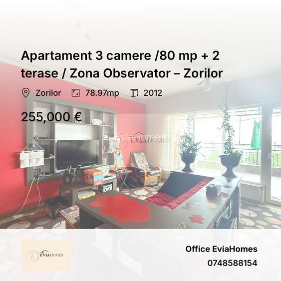 Apartament 3 camere /80 mp + 2 terase / Zona Observator – Zorilor