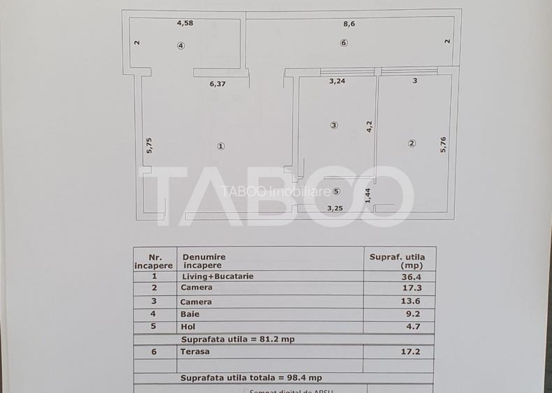 Apartament 3 camere decomandat 81 mp utili + terasa 17 mp nou 2025
